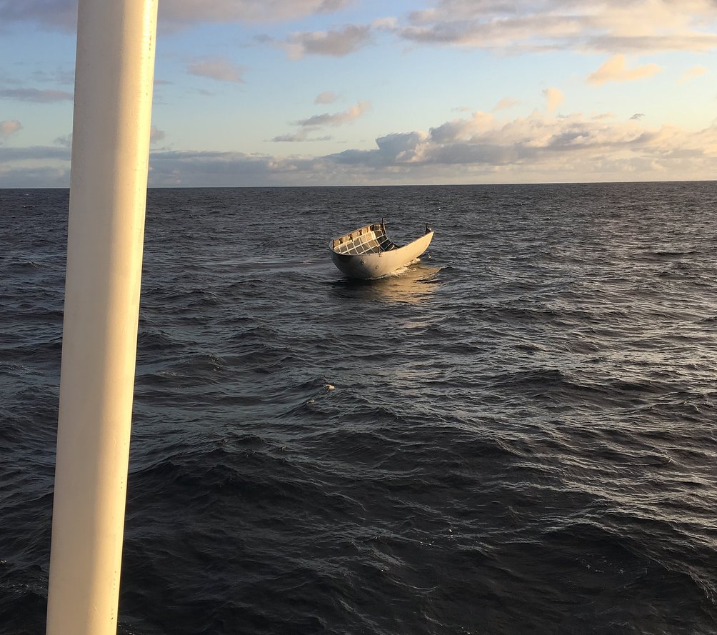 The fairing finally land next to the boat, only hundreds meters to it, undamaged !